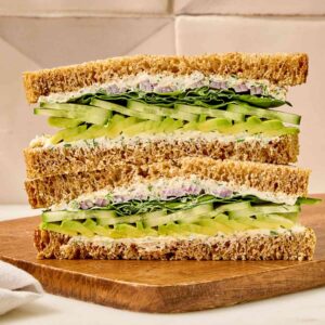 With its crisp cucumber slices, creamy spread, and soft white bread, this delicate sandwich is perfect for afternoon tea, garden parties, or a light lunch.