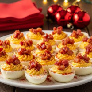 Give traditional deviled eggs a festive upgrade by adding crispy bacon bits and a sprinkle of paprika.