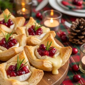 Made with puff pastry, creamy brie, and tangy cranberry sauce, these little bites look fancy but are incredibly easy to make.