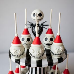 Cake pops are the perfect bite-sized treat for spooky movie fans! Inspired by Tim Burton’s The Nightmare Before Christmas, these little desserts can be as cute or creepy as you want.