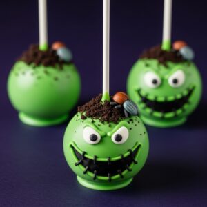 Make square cake pops instead of round ones, coat them in green, and decorate with black icing dots to resemble Oogie Boogie’s dice.