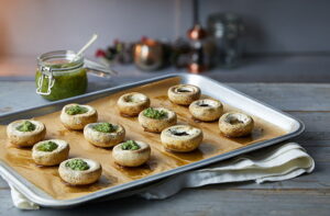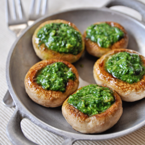 These bite-sized delights combine the earthy, savory taste of mushrooms with the vibrant, herbaceous kick of pesto.