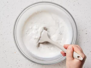 4. In a bowl, mix cream of mushroom soup with milk, then pour over the potatoes.