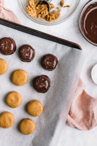 - Add 1 tsp peanut butter mixture on top of chocolate.