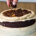Add about 1 teaspoon of peanut butter filling on top of the chocolate layer.