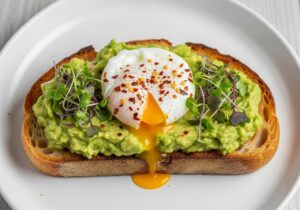 A modern breakfast favorite, avocado toast with egg offers a perfect balance of healthy fats, protein, and carbs. Start by toasting a slice of hearty whole-grain bread for extra fiber.