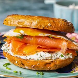 This elegant yet easy breakfast feels like a special treat. Start with a toasted bagel (plain, sesame, or everything bagel work beautifully) and spread a thick layer of cream cheese over each half.