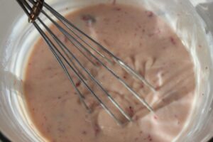 Make the gelatin: Dissolve strawberry gelatin in boiling water, then stir in cold water.