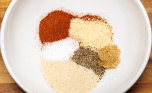 - Season both sides with garlic powder, paprika, salt, and black pepper.