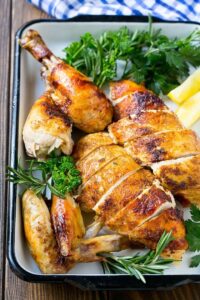 - For extra flavor, rub softened garlic butter under the chicken skin before cooking.